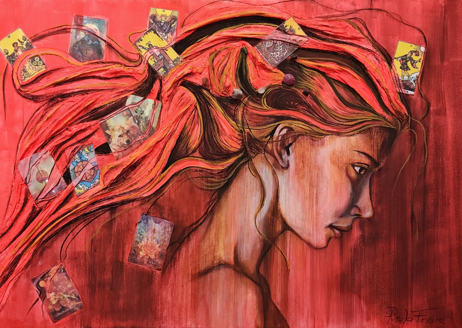 Soy Paola Freire, artista plástica, dedicada a explorar la esencia de la existencia a través de la pintura en técnicas mixtas. Mi obra se centra en el diálogo entre el pasado, el presente y el futuro, abordando conflictos internos y externos. Intento romper moldes y explorar lo incierto, buscando tanto desahogarme como conectar con quienes enfrentan dudas similares. Mi arte invita a la reflexión, al abstraerse del entorno y concentrarse en lo interno, en el cambio constante, con el objetivo de entendernos y encontrarnos en un espacio compartido de comprensión y metamorfosis.